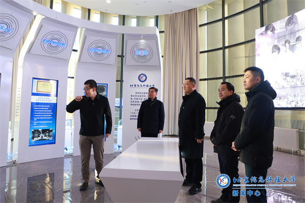 丛威青一行还观看了立德楼沙河校区沙盘,参观了教学主控中心、科研成果展。陈昕介绍了我校新校区建设进展、智慧教室运行、科研成果及转化等情况。