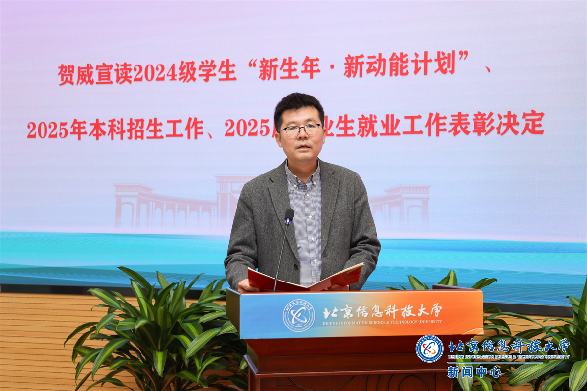 校党委常委、副校长贺威宣读了2024级学生“新生年·新动能计划”、2025年本科招生工作、2025届毕业生就业工作表彰和决定。