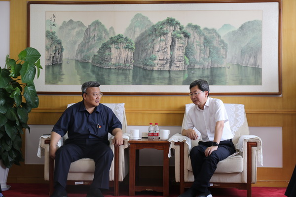 王传亮一行随后来到延庆区委区政府,与延庆区委书记穆鹏亲切会面。王传亮表示,北京信息科技大学为学习贯彻习近平总书记关于扶贫工作的重要论述,响应北京市委市政府号召,深入基层,开展扶贫走访调研工作,以切实行动,凝心聚力,坚决打赢扶贫攻坚战。同时,为落实立德树人根本任务,在人才培养和科学研究方面做到理论联系实际,此次走访调研工作也是北京信息科技大学向基层干部和人民群众学习的重要机会。未来希望能够继续加强同延庆区委区政府的交流合作,深入互帮互助,实现共同进步。