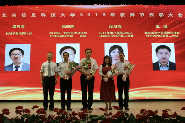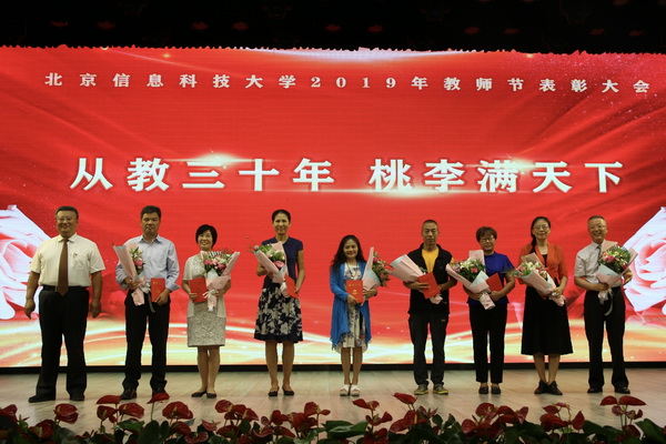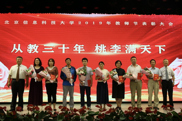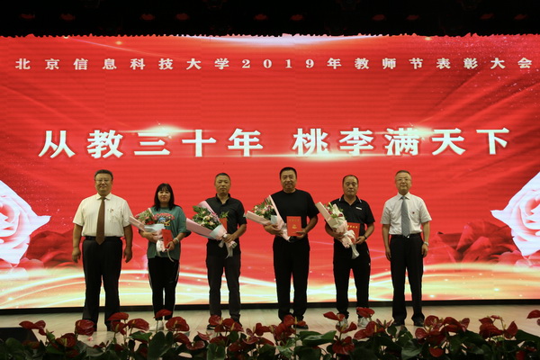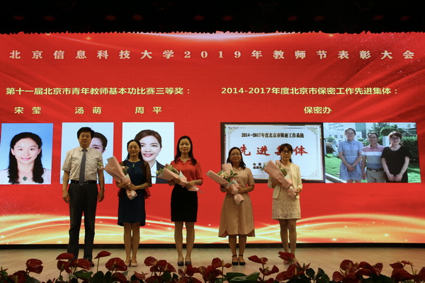 全体校领导分别为获北京学者、北京市教学名师荣誉称号的教师,获长城学者、行业科技奖荣誉获得者,北京市青年教师基本功比赛获奖者,北京市保密工作先进集体,校级教学名师,青年教学名师,校级青年教师基本功比赛获奖者,优秀主讲教师代表,优秀指导教师代表,优秀辅导员代表,优秀班主任代表,从事教育事业三十年教职工颁奖。