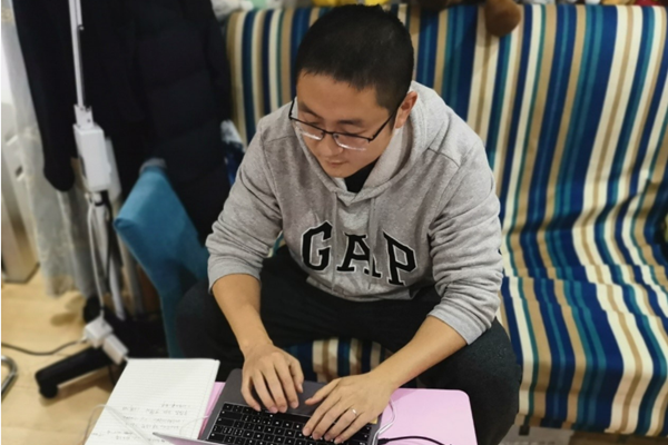 为了隔离14天后能早日回到工作,通信学院辅导员赵贤不远万里,提前返京。为了保障家人安全,他将孩子和父母留在了山东老家。赵贤始终坚守在工作岗位上,收发信息,报送材料,提醒学生,解答疑问。作为一名学工人员,赵贤几乎一整天都要在电脑前完成各项任务;作为一名形势与政策课的老师,他认真备课,力求将学生工作和教学工作协调推进。在疫情扩散之时,赵贤每天努力地将正能量传递给每一位同学。