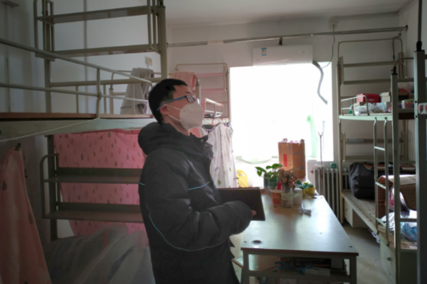 辅导员鹿文彬在疫情爆发之初便主动奔赴一线,处理留校学生的保障工作。他说,“疫情防控,人人有责,身为党员教师更是义不容辞。”鹿文彬仔细排查校园各处的环境,排查每一间学生的宿舍,努力做到无一遗漏。他与留校学生保持24小时联系,除了关注他们的身体情况,还关注他们的生活所需。鹿文彬尽全力为留校学生提供最贴心的保障,坚持做到“一日一查一报”。他说,“特殊时期,学生健康大于天,所以工作要更严谨,更细致。”