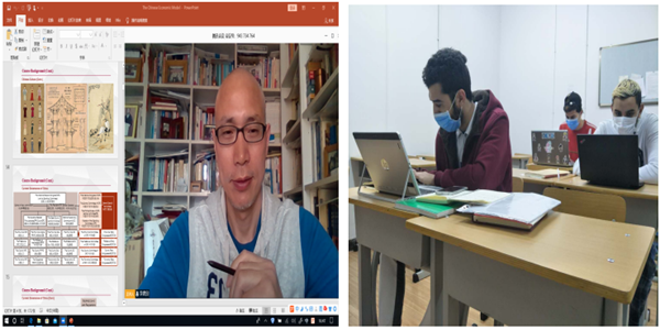 空中课堂亦精彩。抓好延期开学各项工作,及时调整2020年春季学期留学生教学工作安排,并将中、英、俄三种语言的《关于延期开学教学安排致同学们的一封信》发送至每一名留学生;为广大留学生翻译各个教学平台的使用说明,为每一位同学制定学习预案和课程表,从“面对面”转变到“键对鍵”的形式,积极辅助学生在线学习;利用学校网络教学平台组织学生开展在线学习,保证疫情防控期间的教学进度和教学质量。针对留学生语言和文化课程教学,在线推送汉语课程相关、HSK考试相关教学资源,指导学生自学,学生返校后再集中上课补课,确保完成学期教学目标。