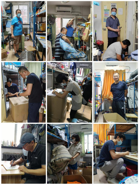 动员会上,学院党委书记韩俊彦、院长李宁对参与工作的老师们进行简短动员,鼓励老师们为每一位毕业生提供最完善、最细致、最贴心的服务。在领取完打包物资后,老师们走进宿舍与毕业生通过“视频连线”方式进行物品确认。整理工作繁重且琐碎,为避免遗漏,努力将工作做到极致,确保打包过程的透明和安全,老师们付出了极大的爱心、耐心和责任心。多位年过半百的教授,克服年龄和工作上的压力,打包分类如同专业研究,严谨细致,兢兢业业,成为打包队伍中最亮丽的“榜样”。