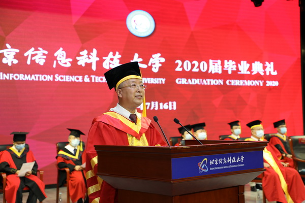 线上典礼改变的只是相聚方式,不变的是来自母校的满满情谊与真挚祝福。请允许我代表学校党政领导和全体师生员工向今年毕业的3185名本科生和457名研究生,表示最热烈的祝贺!向悉心指导你们成长成才的全体教职员工,表示衷心的感谢!向关注北京信息科技大学发展建设、全力支持你们学习成长的家长们,表示亲切的问候!