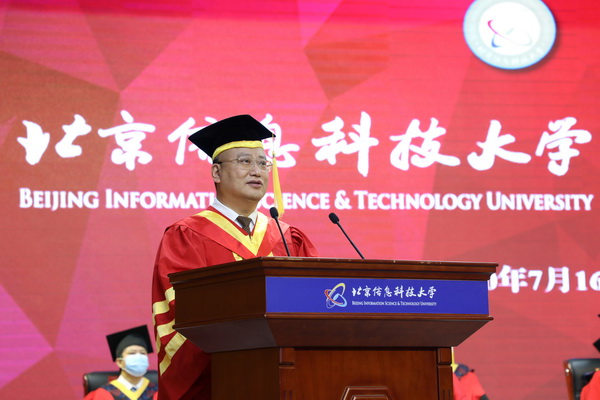 校党委副书记、校长王永生作毕业致辞。王永生表示,四年来同学们不负期望,秉承“勤以为学 信以立身”的校训精神,百舸争流,锐意进取,在各项赛事中取得了丰硕的创新成果。在学校党委的领导下,在同学们的参与下,围绕“建设信息特色鲜明的高水平大学”发展目标,学校在人才培养、科学研究、社会服务、文化传承等各方面取得了令人瞩目的成绩。