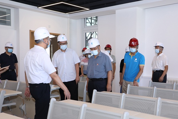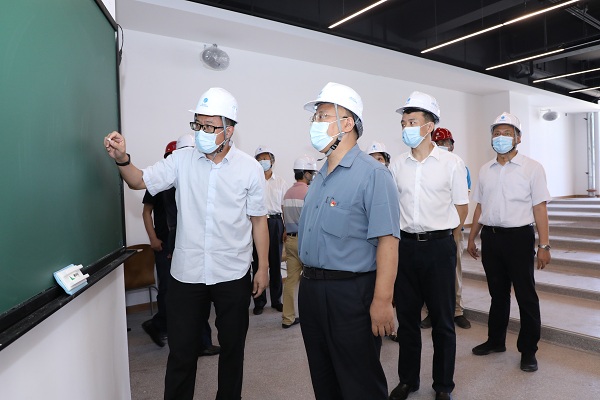 8月3日,校党委书记王传亮到新校区调研检查工作,校党委副书记周志成,副校长马綮鸿,纪委书记陈清华,副校长于世洁、张琳、陈昕,校长助理栾忠权和相关职能部门负责人一同调研。