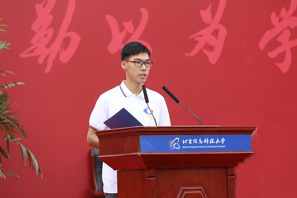 来自仪器科学与光电工程学院的单林林作为研究生新生代表发言。他表示,作为研究生,要潜心学问、敢于坚守,涵养德性、立德修身,立志奋斗、献身国家。他号召全体研究生在为学之道上勤恳踏实,为科技强国,为实现中华民族伟大复兴贡献青年一代的磅礴力量!
