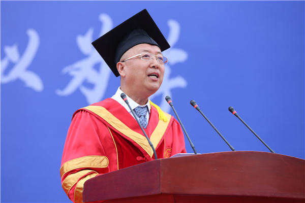 王永生回顾了我校研究生教育40年发展历程和取得的成绩,指出,学校始终坚持立德树人根本任务,致力于服务国家和首都发展战略,培养了一大批高素质应用型创新人才,为国家建设和首都发展做出了应有的贡献。王永生寄语广大毕业生:一是坚守理想信念,传承家国情怀。希望同学们勇敢地接过师长的旗帜,传承矢志不移的家国情怀,探索磨练,勇攀高峰,让青春在为祖国、为民族、为人民的不懈奋斗中绽放绚丽之花。二是坚守初心使命,永葆创新精神。希望在未来的人生道路上,同学们能够鼓起勇气去探索这变化万千的世界,敢于向未知领域挑战,成为一名孜孜以求的创新者,去勇敢地掀开科技创新的新篇章!三是坚守赤子之心,不忘为学之道。希望同学们在今后的学习和工作中,要时刻怀抱赤子之心、不忘为学之道、永葆学人风范,不弄虚作假,不投机取巧,日积月累、砥砺前行,最终必将厚积薄发,收获丰硕的成果。
