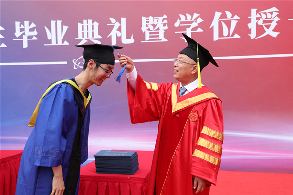 毕业典礼结束后,举行了学位授予仪式,校领导班子成员向获得硕士学位的2021届研究生和2020届研究生代表授予学位。