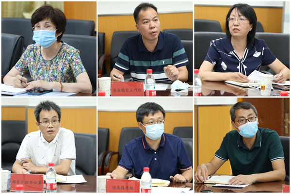 会上,学校疫情防控领导小组办公室和八大工作组分别就所在小组疫情防控工作开展情况及存在问题进行汇报。人事处处长谢新伟代表教师工作组汇报了教职工流调台账工作、进出京管理审批等工作开展情况;学工部部长张景波、研工部部长王兴芬代表学生工作组分别就各地本科生、研究生信息报送台账工作、在校生管理、学生思想工作等方面进行汇报;后勤党总支书记刘伟代表后勤医疗组汇报了疫情期间后勤工作的开展和后勤物资的保障情况,校医院院长才秀芬汇报了校医院应急处理机制、核酸检测、隔离区的设置及暑期就医等医疗保障工作开展情况;安稳处处长龚汉明代表安全稳定工作组就疫情期间严控人员、车辆出入流程,安保人员管理和设置,校园安全保障等方面进行汇报;教务处处长米洁、研究生院常务副院长王兴芬代表教学科研工作组汇报了当前科研工作开展情况、疫情期间实验室进出管理和线上线下教学工作两手准备的预案制定情况;宣传部部长杜世智代表宣传工作组汇报了疫情变化以来学校新闻网、疫情防控专题网站、学校官微在教育引导、宣传报道等方面工作以及舆情相关情况;党委办公室主任王智勇代表领导小组办公室就各小组协同配合、师生大数据排查等工作进行汇报;校长办公室主任贾斌代表信息报送组汇报了信息报送、各个校区连同家属院社区联防联控等工作;纪委办公室主任英树志代表纪检监察工作组对疫情防控工作检查中发现的问题和缺漏进行汇报。