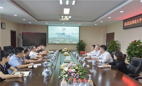 徐华蕊对王永生一行的到访表示热烈欢迎。他表示,桂林电子科技大学和北京信息科技大学在共同隶属于电子部期间结下了深厚的友谊,近年来双方也在各方面合作密切。希望双方深化合作,互助共赢。随后,桂林电子科技大学相关部门负责人对人才培养、科技创新、学校治理能力、管理方法等领域进行了工作介绍。双方还就“一带一路”文化教育合作、信息人才培养等具体问题进行了深入探讨和交流。
