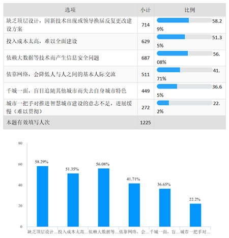 团队成员深入走访调研城市发展研究院、信通院等部门,积极开展网络问卷调查,收回有效样本1225份。先后进行十多次的讨论交流,在思想交流碰撞的过程中,不少新的想法和思路涌现出来。在分析大量国内外智慧城市建设文献案例的基础上,总结出智慧城市建设5条新趋势新特点,并提出4条合理化建议。