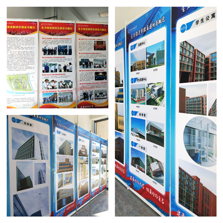 以展板的形式分层分类,直观且立体地展示新校区建设与搬迁工作成果。新校区的建设者和工作人员们用汗水和成果回馈着大家对新校区的关注。