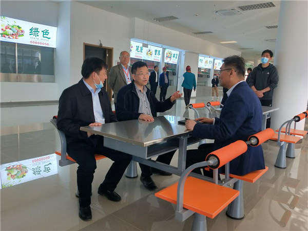 冷传才一行实地查看了新校区工程建设和设施设备投入使用情况,先后考察了园林绿化、学生公寓、学生食堂、报告厅等新校区配套项目完成情况,并在新校区文理楼A座207教室听取了学校新校区建设与搬迁工作进展情况汇报,详细了解了新校区工程进展和搬迁安排。