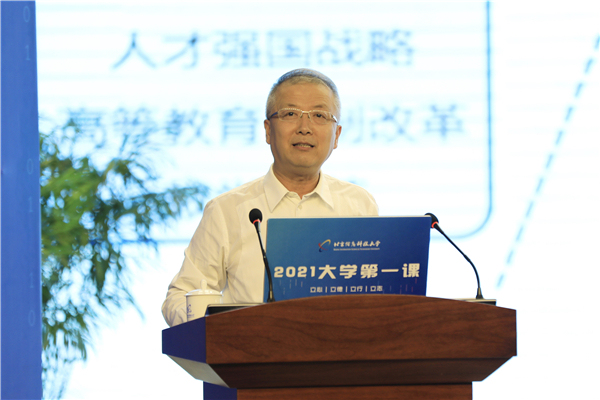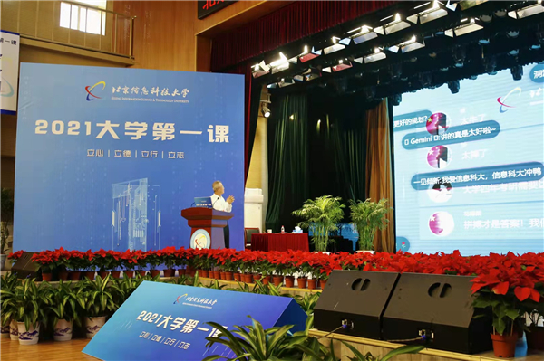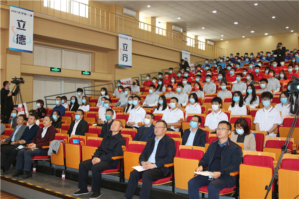 10月13日下午,校党委副书记、校长王永生在小营校区大学生文化艺术中心,以“立心、立德、立行、立志”为主题,为2021级新生讲授大学第一课。本次大学第一课由校党委副书记周志成主持,并通过网络在小营校区、清河校区和健翔桥校区同步直播。全体2021级新生听课。