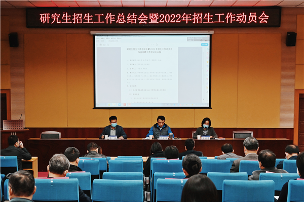 10月28日下午,学校在国际学术交流教室召开研究生招生工作总结会,全面总结2021年研究生招生工作,动员部署2022年研究生招生工作。校党委常委、副校长于世洁,学校研究生招生工作领导小组成员,相关职能部门负责人,相关学院院长与分管副院长,学科专业负责人,研究生招生工作秘书等40余人参会。会议由于世洁主持。