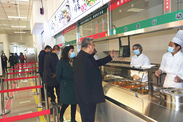 11月22日,校党委书记王传亮赴新校区检查指导食堂工作。校党委副书记周志成,校党委常委、纪委书记陈清华,校党委常委、副校长陈昕,校长助理栾忠权,新校区建设办、新校区管委办、后勤管理处等部门负责人一同检查。