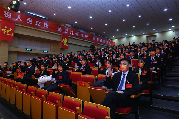 学校团委书记王晗代表我校共青团第一届委员会做了题为《坚定理想信念、站稳人民立场、练就过硬本领、投身强国伟业,为建设信息特色鲜明的高水平大学,为实现中华民族伟大复兴贡献青春力量》的工作报告。报告全面系统回顾了我校共青团在思想引领、组织建设、文化育人、科技创新、实践育人等方面重点开展的工作和取得的成绩,分析了当前工作面临的新形势和新要求,明确了下一阶段的发展目标和基本工作任务。
