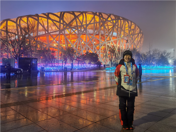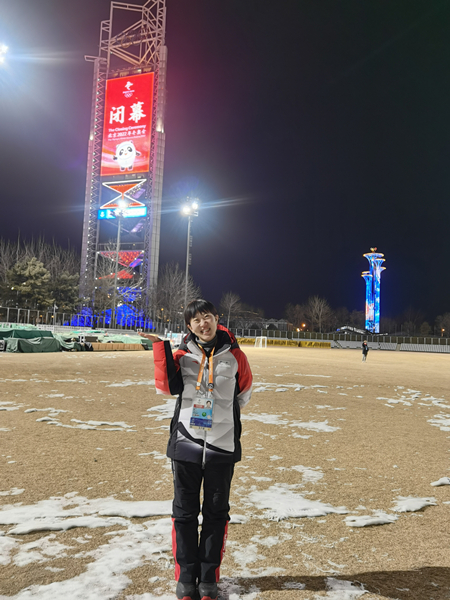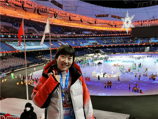 “当我真正的走进冬奥,融入到冬奥大家庭时,我深知使命在肩的责任,容不得我对工作有一丝懈怠。在冬奥会开闭幕式现场观礼时,我切身感受到了中国式浪漫和国家的繁荣富强,以及中华民族天下一家、和而大同的包容。现场见证了中国7面五星红旗在颁奖广场高高升起时每一个中国人浓浓的民族自豪感和爱国之心。也近距离看到了运动员喜极而泣和奖牌绽放光芒的瞬间,感受到了“美美与共”的梦想与荣耀。”