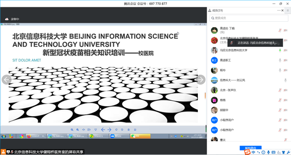 5月16日上午,根据学校疫情防控工作安排,为了加快推进学校离退休教职工新冠疫苗接种,离退休工作处与校医院联合组织召开腾讯会议,宣讲老年人新冠疫苗接种知识,并为大家解疑释惑。离退处处长刘云风,校医院副院长黄月仙、刘峰,校医院预防保健科冯欣大夫、离退处工作人员、学校部分离退休教职工参加会议。会议由离退处副处长丁娟主持。