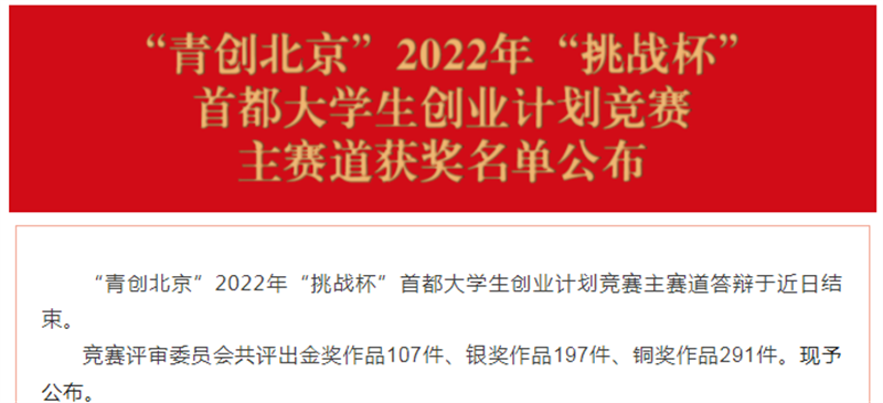 我校在“青创北京”2022“挑战杯”首都大学生创业计划竞赛中取得佳绩