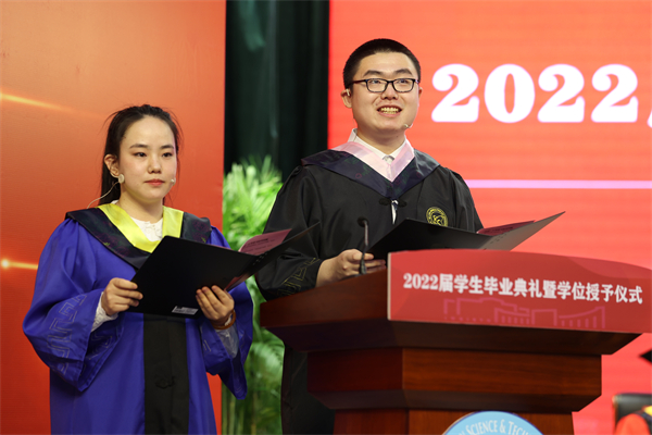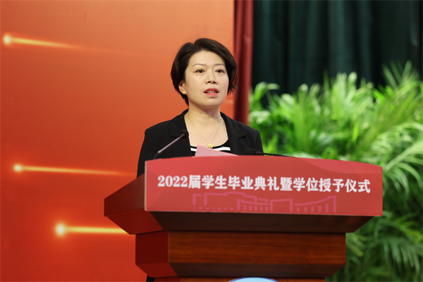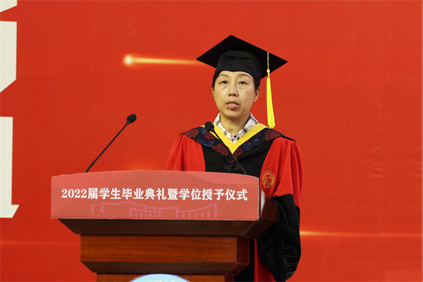 校党委常委、副校长于世洁宣读《2022届本科学生准予毕业及授予学士学位的决定》《2022届研究生准予毕业及授予硕士学位的决定》。