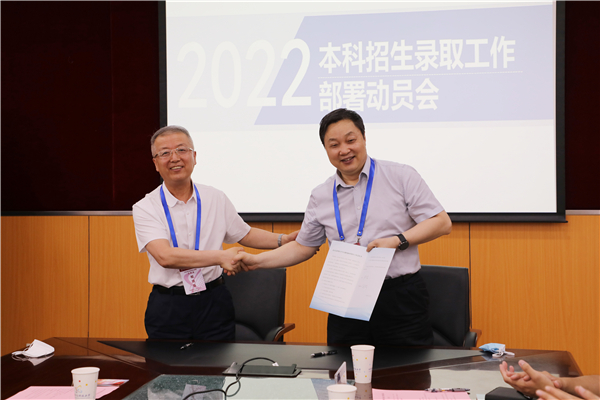 纪委办公室主任英树志组织签订《北京信息科技大学全日制普通本科招生工作责任书》。