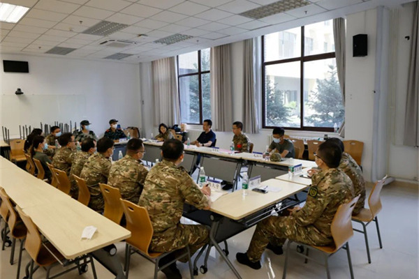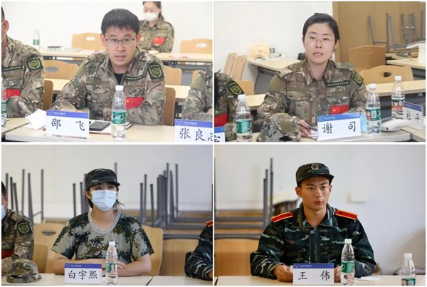 座谈会上,军训团汇报了学生返校及训练期间的学生管理和疫情防控情况;计算机学院党委副书记邵飞、理学院党委副书记谢司介绍了学院从严从紧从细落实防疫政策,主动作为、靠前服务、联防联控,持续巩固防疫战线的相关经验;参训学生代表白宇熙、王伟分享了自觉遵守防疫规定、积极做好个人防护、发挥榜样表率作用等方面的感受。