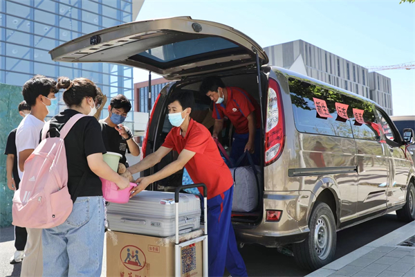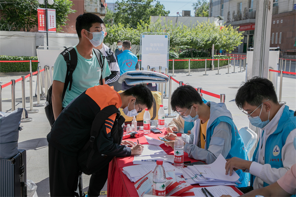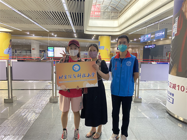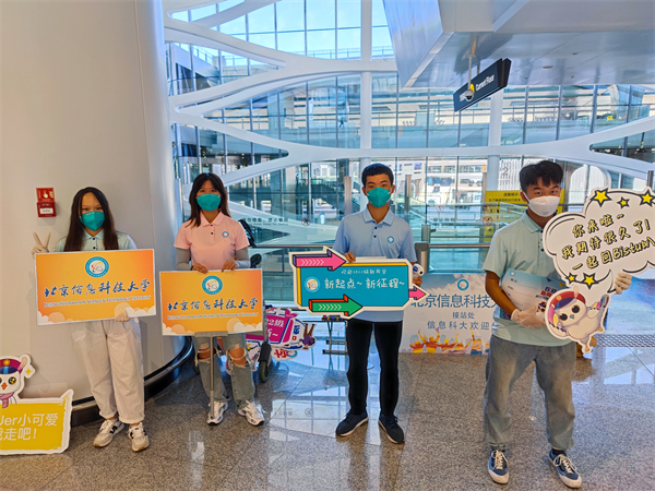 在大兴机场、北京站、北京南站、北京西站、沙河高教园地铁站,学校团委组织的接站志愿者早已翘首以盼。2022级同学乘坐学校安排的大巴车前往各个校区。