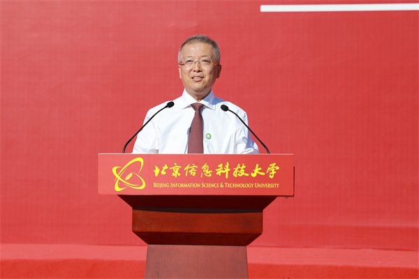 校党委副书记、校长王永生致辞。王永生首先对3068名本专科新生加入北京信息科技大学这个大家庭表示热烈的欢迎和诚挚的祝贺。他指出,作为新时代的中国青年,同学们身处中华民族伟大复兴的关键时刻和实现“两个一百年”奋斗目标的重要征程,生逢伟大时代,重任在肩,唯有担当。希望同学们在信息科大,学而不辍、赓续奋斗,把厚植爱国情怀、追求学术真理、探索世界本质作为目标,增长才干、涵养德行、勇担使命。