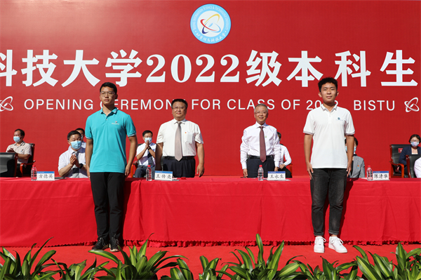 9月7日上午,北京信息科技大学在新校区东操场隆重举行2022级本科生开学典礼。受疫情影响,典礼以网络直播方式进行。全体校领导、相关职能部门负责人和发言教师代表现场参会。各学院书记院长,全体学工系统人员,全体2022级本专科学生、学生家长线上参会。开学典礼由校党委副书记周志成主持。