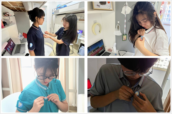 王传亮、王永生为2022级学生代表佩戴校徽,线上观礼学生自行佩戴校徽。
