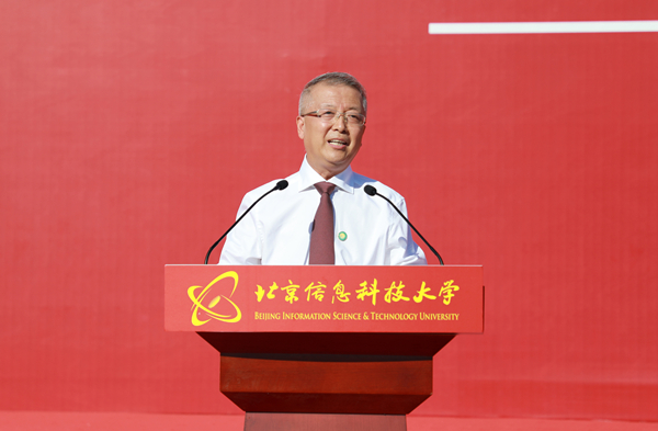 北京信息科技大学诞生于1937年的抗日烽火中,从“实业救国”、“工业报国”、“信息强国”,到“建设信息特色鲜明的高水平大学”,学校时刻把自身发展与时代需求紧密相连,形成了鲜明的信息特色、军工特色和行业特色。近年来,学校在关键技术领域勇攀高峰,教学科研不断再上新台阶,去年十月正式获批成为博士学位授予单位,今年九月开始本硕博全层次人才培养,新校区实现主体搬迁启用。你们的到来为学校注入了庞大的新生力量,也开启了同学们全新的人生阶段,学校定会竭尽全力为你们的成长成才保驾护航。作为校长,我衷心地希望同学们在信息科大这方宁静的校园里,学而不辍、赓续奋斗,把厚植爱国情怀、追求学术真理、探索世界本质作为目标,增长才干、涵养德行、勇担使命。在此,我有三点希望与同学们分享共勉: