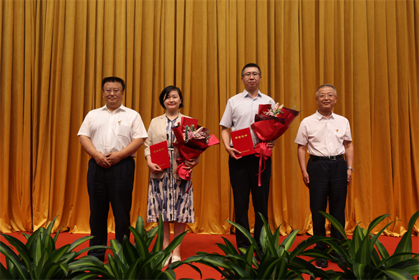 王传亮、王永生为受表彰个人及团队代表李红、倪渊老师颁奖。