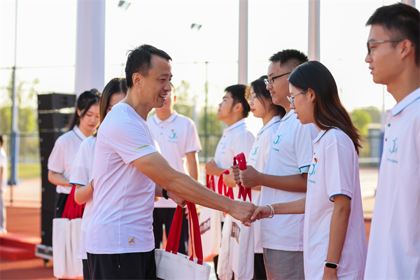 周志成宣布本学年健康跑正式启动,并鼓励同学们以旗帜为方向,为祖国勇毅奔跑,锻炼强健体魄,为祖国健康工作。