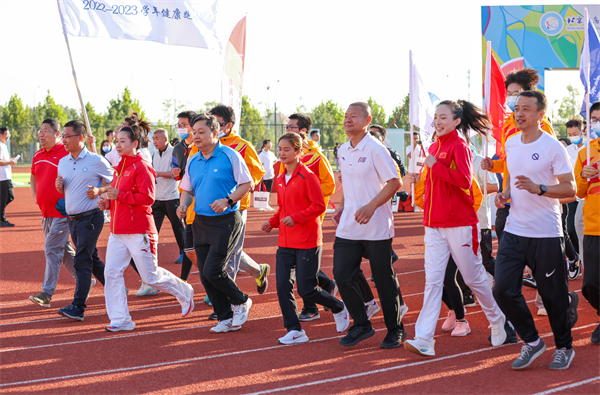随后,校领导与师生代表一起领跑2022-2023学年健康跑。