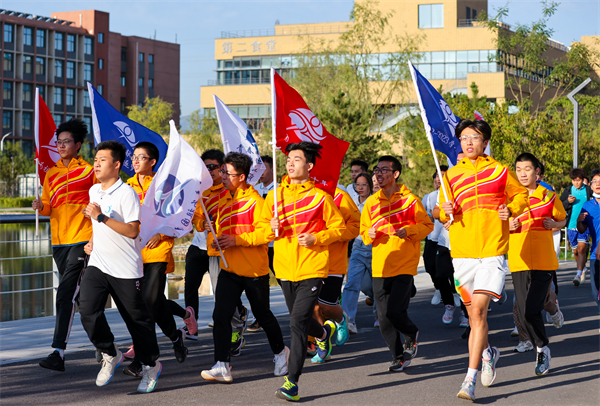 青春献礼二十大,奔跑逐梦新征程。为迎接党的二十大胜利召开,积极响应“健康中国”战略,学校于9月21日清晨在新校区东操场举行新校区第一次集体升旗仪式暨2022-2023学年校园健康跑步启动仪式。学校党委副书记周志成,副校长、校体育工作委员会主任方德英,党委常委、副校长于世洁,相关职能部门负责人、学院学生工作负责人,分团委书记、新生辅导员、学生代表200余人参与了本次活动。活动由校团委书记王晗主持。
