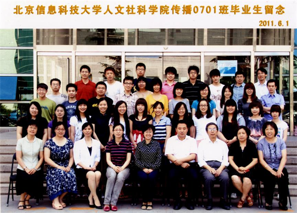 2011年,北京信息科技大学人文社科学院传播0701班毕业生留念