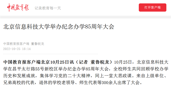 12.北京日报:北京信息科技大学迎85岁生日,数万名师生为学校云庆生