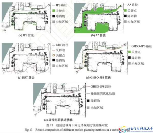 机电系统测控北京市重点实验室主任王立勇教授在《机器人》发表的“基于目标导向和分层平滑优化JPS算法的移动机器人运动规划”论文,提出了一种基于目标导向和分层平滑优化的跳点搜索(GHSO-JPS)算法,并通过多段多项式法和基于斥力势场的碰撞惩罚算法对运动轨迹进行优化。该算法较传统运动规划方法具有更高的路径规划性能、更高的效率及更强的轨迹优化能力。