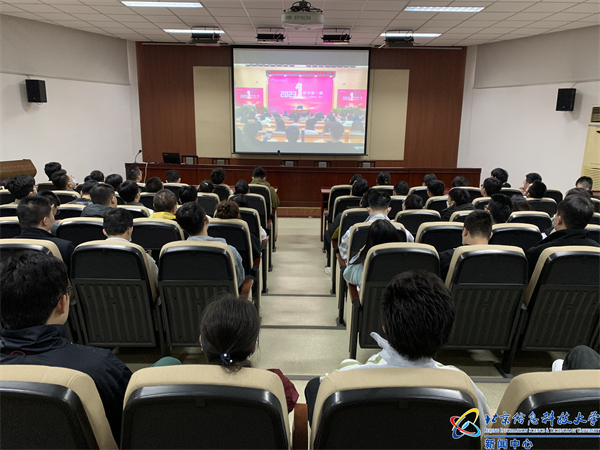 王传亮以“我们处于什么历史阶段、我们与世界是什么关系、我们怎么办”向师生发问,并从世界之变、时代之变、历史之变和教育之变等多个层面,深入分析了党和国家事业发展、高等教育发展和学校建设发展面临的新形势和新任务。在谈到党的二十大关于教育、科技、人才“三位一体”的战略部署,以及全国“两会”对科技创新领域的重点关注时,王传亮强调,作为新时代的青年学生,同学们应该思考,如何去适应这些变化,通过学习不断增强自身的政治素养、专业能力、科学精神和人文精神,努力成长为堪当时代重任的信息科大人。
