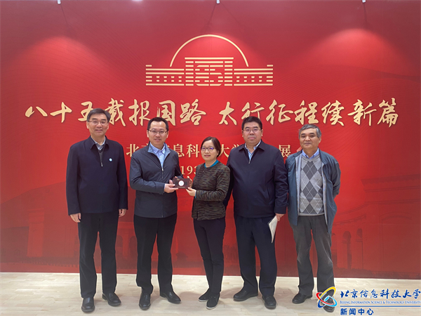 在讲解员的带领下,李渝勤、施水才等人一行共同回顾了北京信息科技大学85载的办学历史,以及一代代师生守正创新、自信自强的办学实践和坚守教育初心、服务国家大局的办学精神。在一幅幅泛黄的老照片面前,施水才教授生动回忆起当年在学校工作、创业的场景。陈昕、叶向忠亲手接过了捐赠的珍贵史料,并向施水才教授颁发了捐赠证书和北京信息科技大学办学85周年纪念画册。