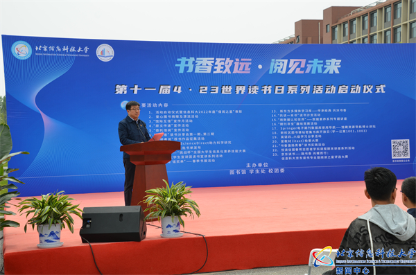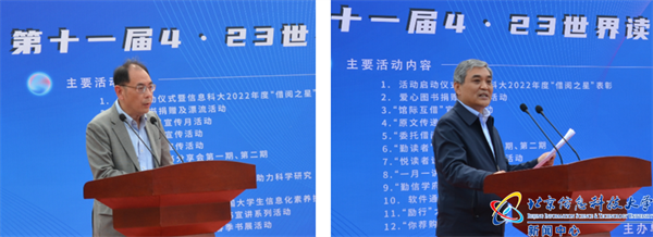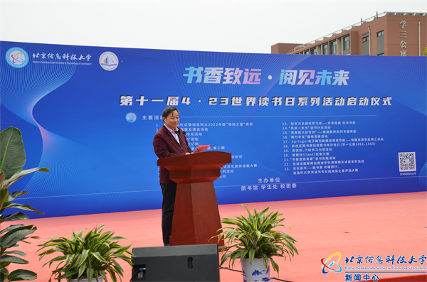 方德英宣布北京信息科技大学2023年度4·23世界读书日系列活动正式启动。他在致辞中代表学校对活动的顺利启动表示热烈祝贺,对获得2022年度“借阅之星”称号的师生表示衷心祝贺,希望取得“借阅之星”称号的师生在2023年继续从图书馆、从阅读中取得更大收获。他强调,习近平总书记在党的二十大报告中指出“推进文化自信自强,铸就社会主义文化新辉煌”,提出了“深化全民阅读活动”并一直强调读书的重要性,提倡多读书,建设书香社会。他表示,读书从个人层面来看作用是塑造人格、提升素养,从国家民族层面来看则是一种传承文化的责任担当和历史使命。图书馆是学校的文化中心,在“三全育人”和学校“五个环境建设”中发挥着重要的作用。希望图书馆适应新时代的发展需求,持续坚持“读者第一,服务至上”的理念,不断拓展服务功能,创新服务模式,力争把图书馆建成“知识传播的殿堂”、“学习交流的殿堂”和“文化传承的殿堂”,助力学校高质量发展,为实现立德树人的根本任务做出更大贡献。希望广大师生勤读书、善读书、读好书,积极参与到系列活动中,以读书强素质,以读书传文明,以读书筑梦想,在书香中收获强健的精神筋骨和丰盈的精神生命,在阅读中开启更加美好的未来,在青春的赛道上跑出最好成绩!