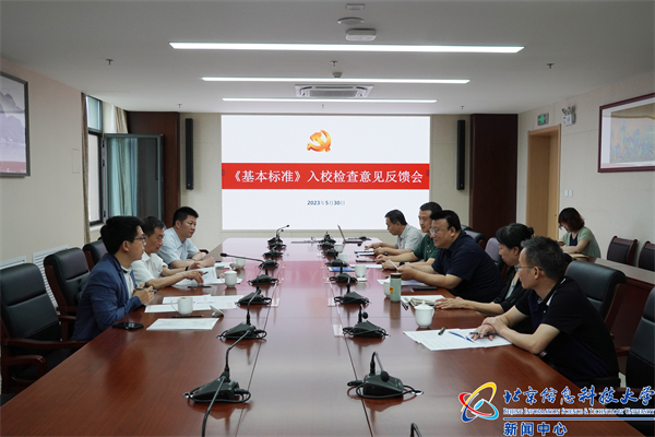 5月30日上午,《北京普通高等学校党建和思想政治工作基本标准》(以下简称《基本标准》)入校检查意见反馈会在太行路校区立德楼307会议室召开。检查组由北京交通大学原党委副书记颜吾佴带队,市教委政策研究与法制工作处二级调研员张友伟、市委教育工委组织一处干部果志伟组成。校党委书记王传亮,校党委副书记于世洁,校党委常委、纪委书记陈清华,党委常委、组织部部长李华涛,出席反馈会,相关工作人员参加会议。