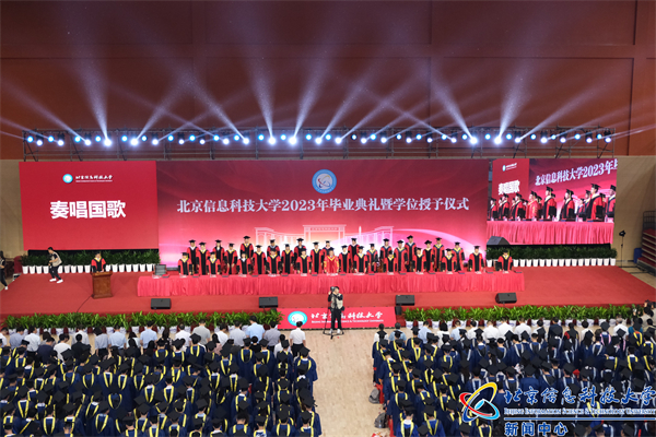 在庄严肃穆的国歌声中,毕业典礼正式开始。