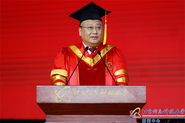 临别之际,王传亮对毕业生同学提出三点希望:一是传承治学报国情怀,在服务祖国中唱响青春旋律。王传亮通过讲述张福学、齐恕安、徐小力、祝连庆、苏中、黄民等历代信息科大人治学报国、服务国家工业化、信息化进程,服务改革开放和经济社会主战场的奋斗历程以及光电学院师生助力大湾区发展、自动化学院学生助力国家绿水青山可持续发展等事例,希望同学们继承优良传统、怀抱家国情怀,把情感之根、事业之根和命运之根深深扎入祖国沃土,在报效祖国中唱响青春主旋律。二是保持开拓创新精神,在主动求变中不断向好前行。通过分析时代变化、党的二十大关于教育、科技、人才的战略布局和经济社会发展状况,回顾信息科大办学历史上的重大创新成果,展望在新一代信息技术、智能装备等高精尖产业科技方面的潜力动能, 王传亮指出,当前,我们拥有前所未有的创新基础、创新条件与创新资源,希望同学们继续秉持实事求是、脚踏实地、求知探索的创新品质和治学精神,主动求变、积极应变,持之以恒,创造更多的传奇。三是坚守文化价值立场,在持续发展中创造诗画人生。通过强调我校学生成长成才导向,五育并举、三全育人工作体系,学校在抗击疫情、建设新校区等过程中凝聚起来的信息科大精神力量,王传亮指出,这些胜利,是文化的胜利,中华文化塑造和培育着中华民族的思维方式、精神品格、价值取向和行为方式,给了我们足够的底气和自信走出困境。希望同学们持续学习并坚守我们文化价值体系和价值观念,从优秀民族文化中汲取智慧力量,为所到之处带去理想、带去公正、带去温暖、带去协作、带去健康。