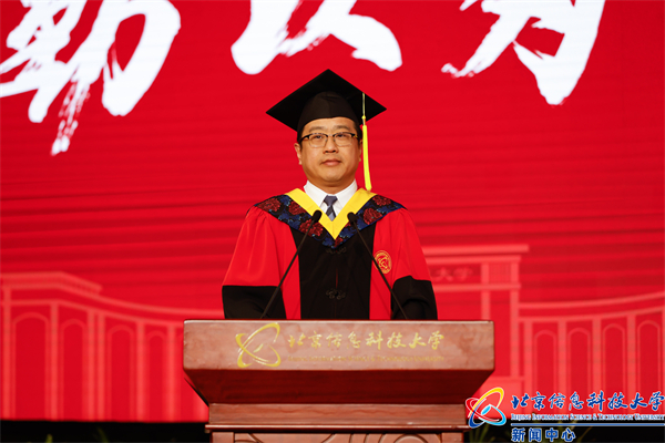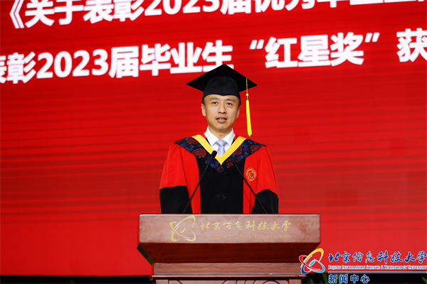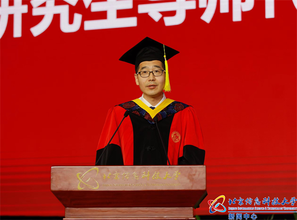 信息与通信工程学院院长曹林教授作为研究生导师代表发言。曹林指出,2023届同学虽遭遇疫情、几经波折,但也在短短这几年间见证着国家改革发展的伟大变迁,见证着学校事业发展的突飞猛进,这样的宝贵经历将会持续塑造、感动、助推着同学们,坚定自信地走向未来。希望同学们立德为先、勇攀高峰,学无止境、与时俱进,学会生活、健康发展;永远怀抱初心,仰望星空,脚踏实地,做最好的自己。