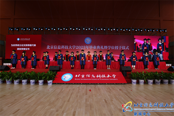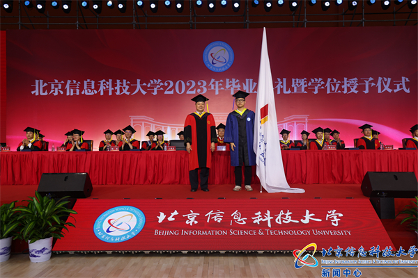 毕业典礼后,举行了学位授予仪式。播放了2023届毕业生名录视频,并由校学位评定委员会委员、导师代表为毕业生授予学位。