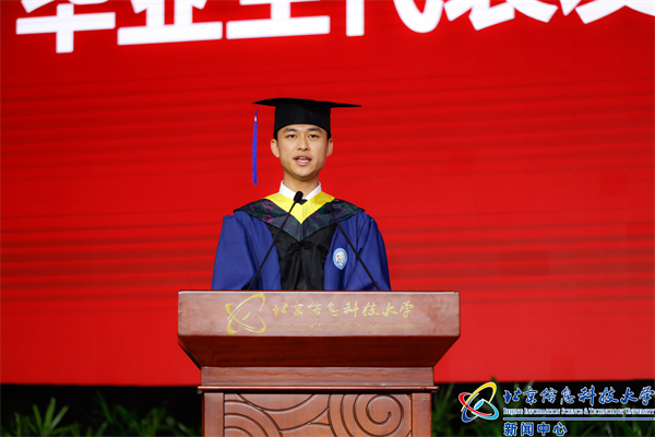 计算机学院2023届研究生杨海翔同学作为毕业生代表发言。通过回忆硕士期间的学习、抗疫、科研、参与国家重点项目的调试保障工作,感谢母校提供广阔舞台,感谢老师辛勤培育,表示将铭记初心,永葆对知识的渴望追求,怀揣对未来的热爱憧憬,追求卓越,奉献青春,勇担重任,服务国家!